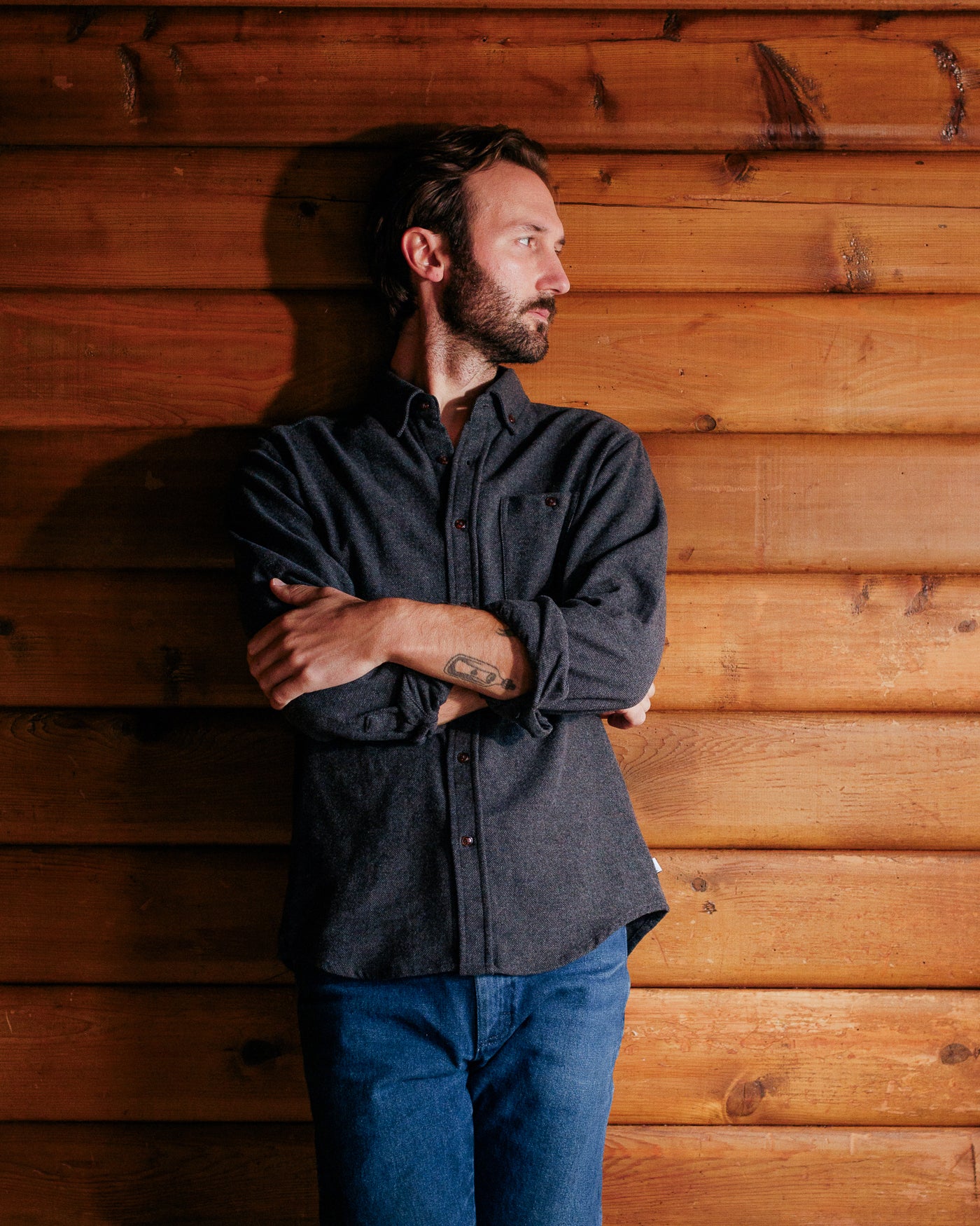 Our tailored fit has a structured, moderately slim cut. To wear over layers, or to fit a more robust frame, we recommend moving up one size.