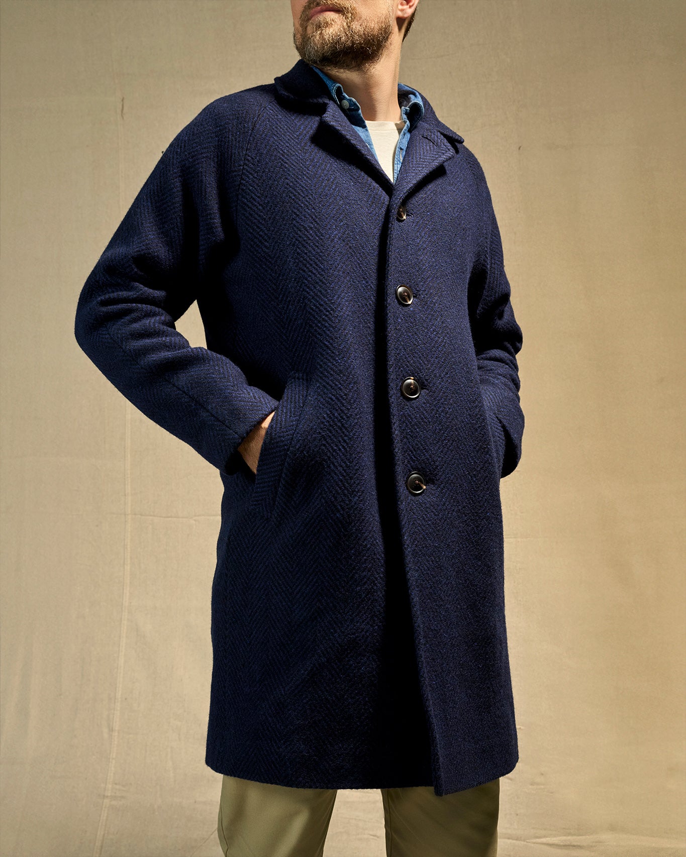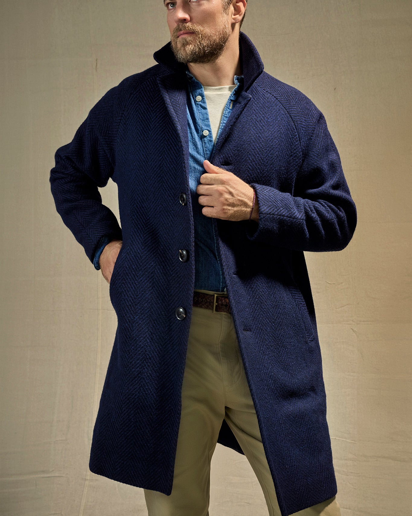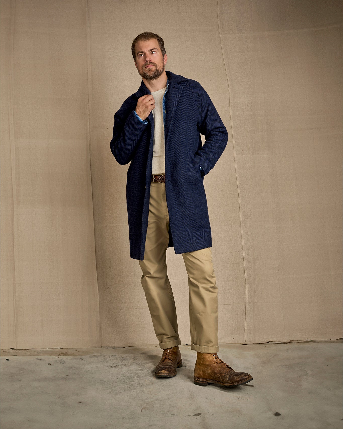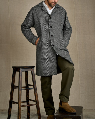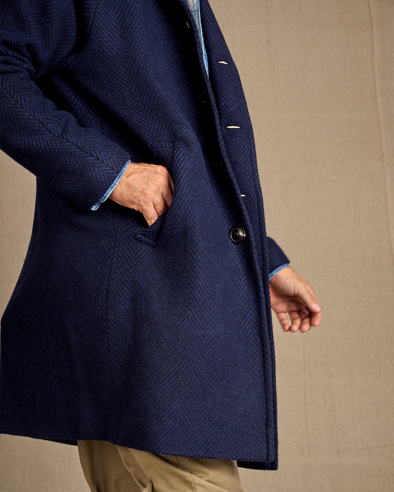 Inspired by the past but reimagined for the future, many of our favourite designs merge centuries of tradition with contemporary, low-impact materials. Made from a warm, durable and weather-resistant post-consumer wool blend, this overcoat features a patterned herringbone weave that was a staple of British tailors on Savile Row. More formal than our other outerwear, the fit is classically tailored with enough comfort and freedom of movement for cold-weather layering. Made in our unique, dye-free process, the heavyweight wool is backed with a smooth, 100% recycled nylon lining, and the collar can be buttoned all the way up on blustery winter days.