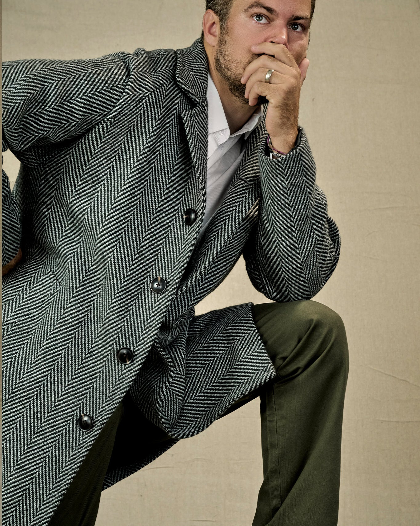 Our tailored fit has a structured, moderately slim cut. To wear over layers, or to fit a more robust frame, we recommend moving up one size.