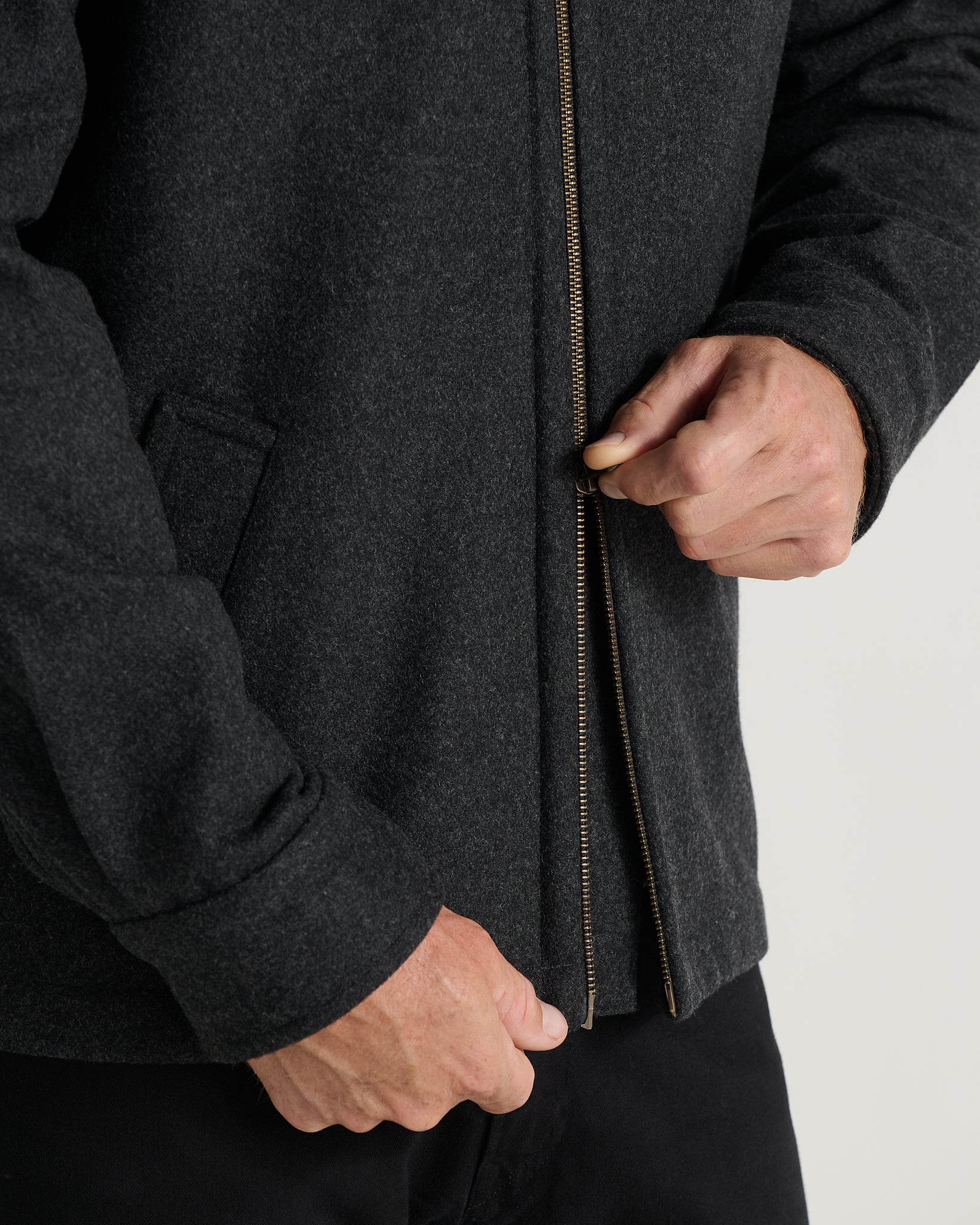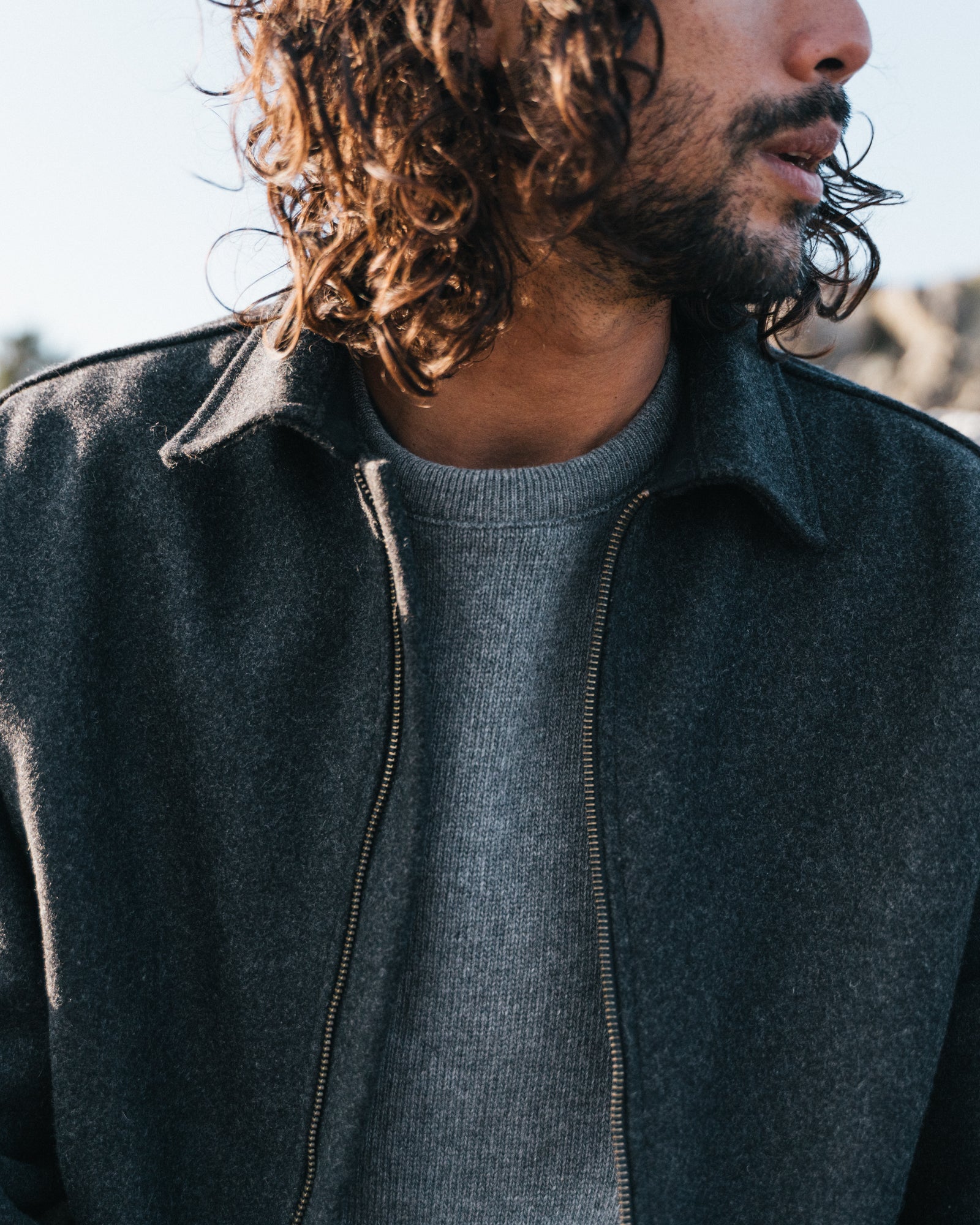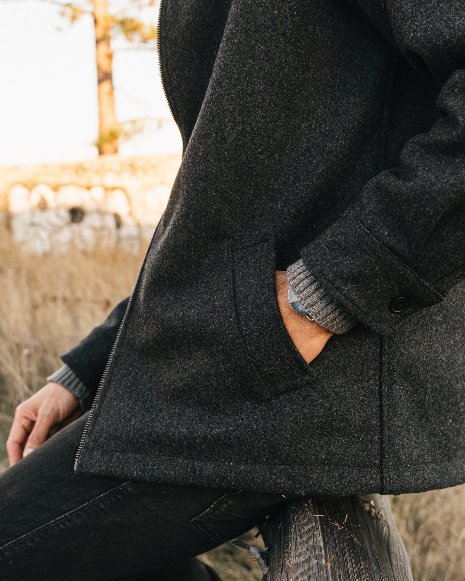 For generations, mariners depended on densely woven melton wool to hold off wind and spray. Supremely durable and weather-resistant, our post-consumer recycled Melton has become an ANIÁN favourite, and we’ve now woven an even more robust version. Our warmest and heaviest-weight outer layer, the Eddie Wool is a carefully built overcoat that combines rugged functionality with a streamlined mid-century design. Made with no added dyes and featuring a brass zipper with hidden storm placket to seal out the wind, it’s a versatile, city-or-country style that’s built to last—wherever you wear it.