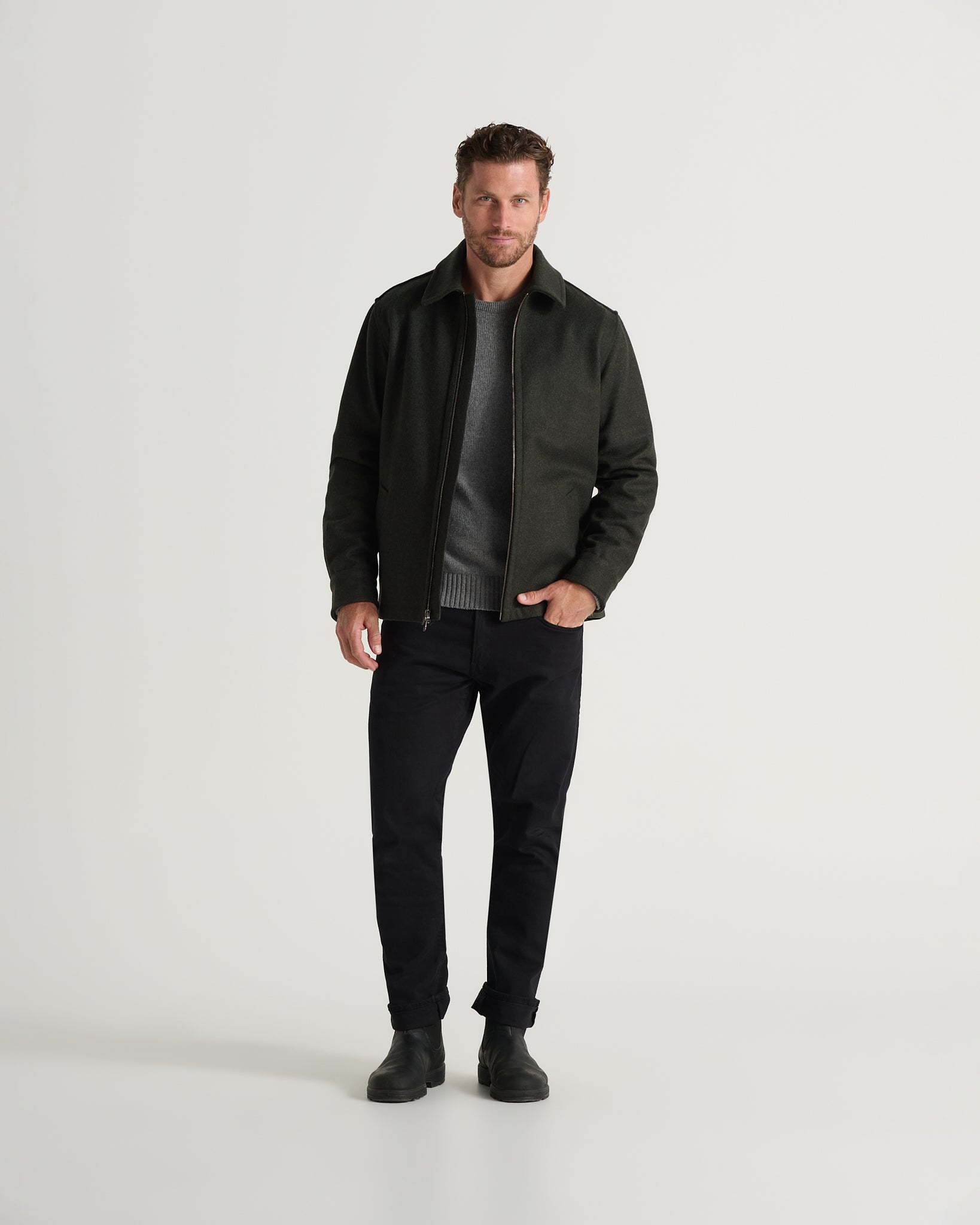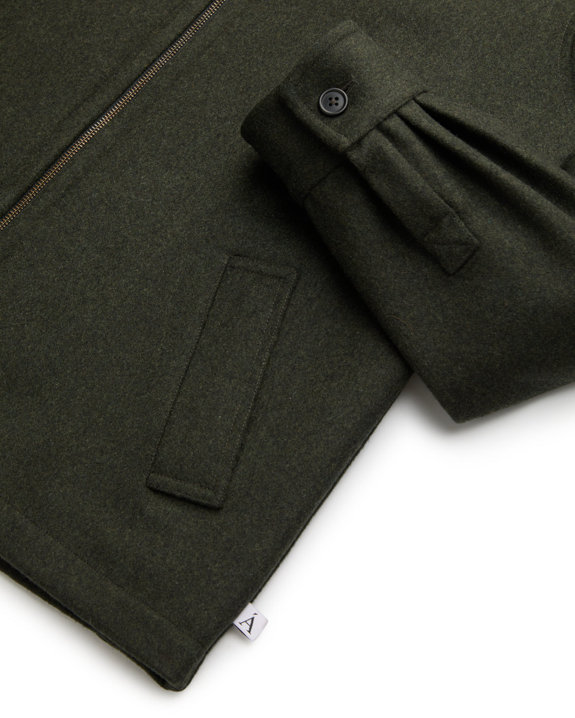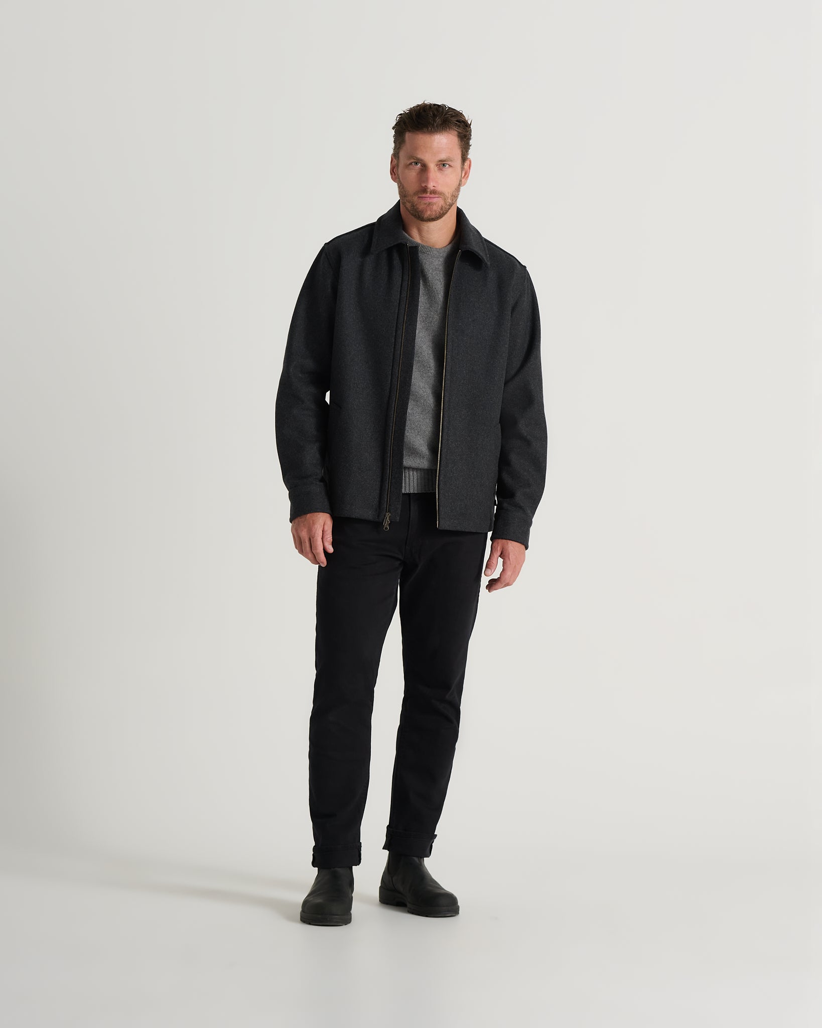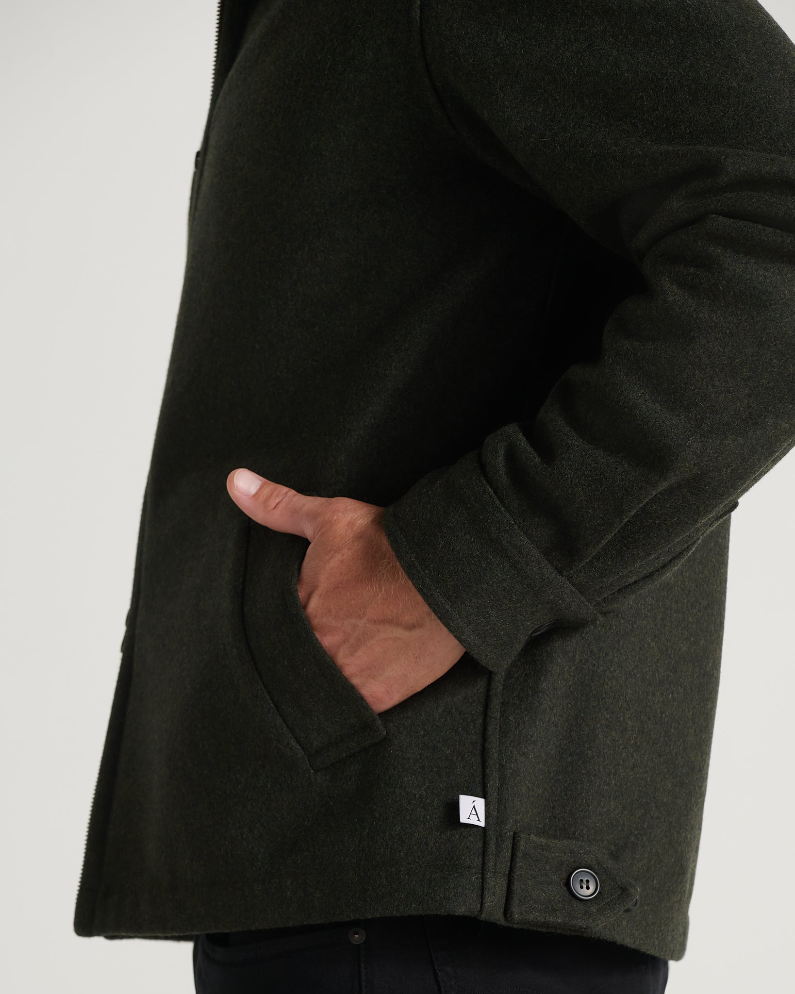 For generations, mariners depended on densely woven melton wool to hold off wind and spray. Supremely durable and weather-resistant, our post-consumer recycled Melton has become an ANIÁN favourite, and we’ve now woven an even more robust version. Our warmest and heaviest-weight outer layer, the Eddie Wool is a carefully built overcoat that combines rugged functionality with a streamlined mid-century design. Made with no added dyes and featuring a brass zipper with hidden storm placket to seal out the wind, it’s a versatile, city-or-country style that’s built to last—wherever you wear it.