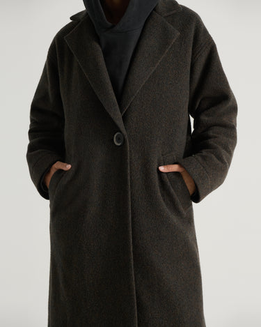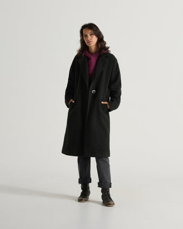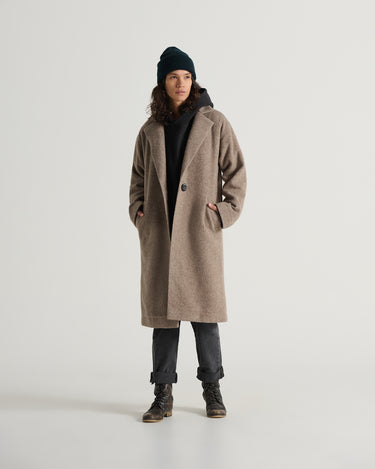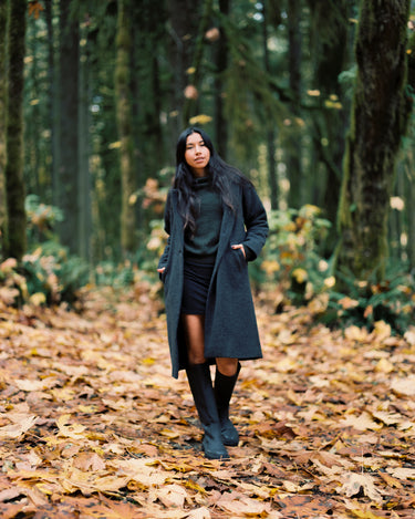 As graceful as the streams and forests of the Sea to Sky, the elegant Britannia was inspired by mid-20th century designs. Pairing a soft post-consumer recycled Agnello wool blend with a silky 100% recycled nylon lining, it wraps you in cozy warmth through cold and foggy winters; the lofted, bouclé-like woolen outer has a weather-resistant weave that drapes naturally while leaving room to move and layer. Easy to style for workday mornings or weekend evenings, the Britannia makes a perfect companion when you need something more refined than a raincoat or fleece.