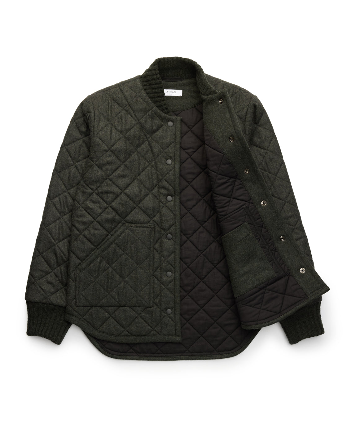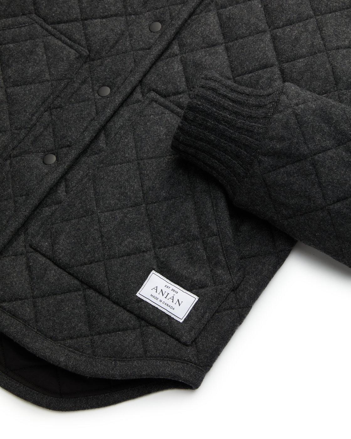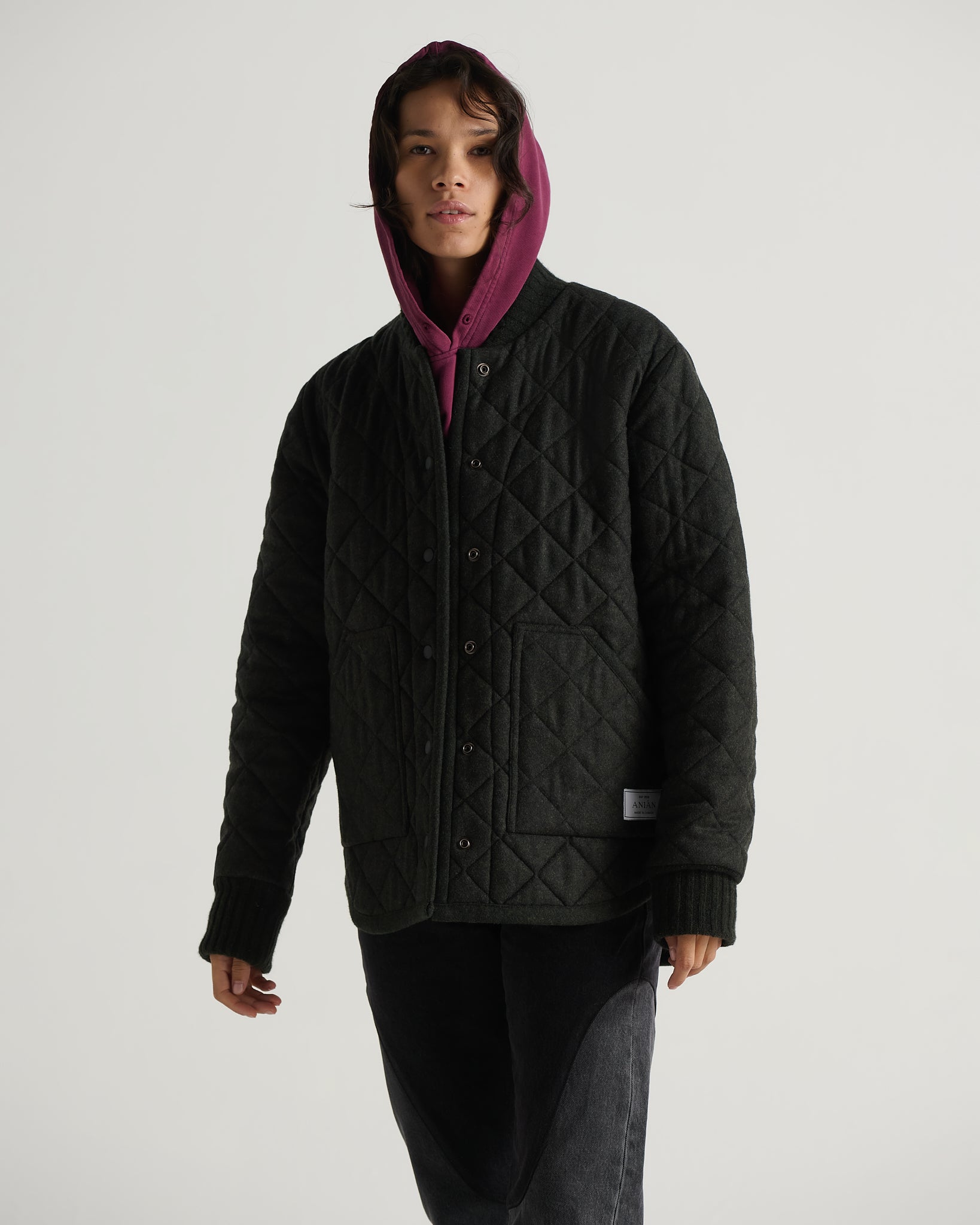 The Quilted Wool Jacket is crafted for layering with an oversized silhouette. Its design offers extra room through the chest and arms for easy movement. See our size chart for more details.