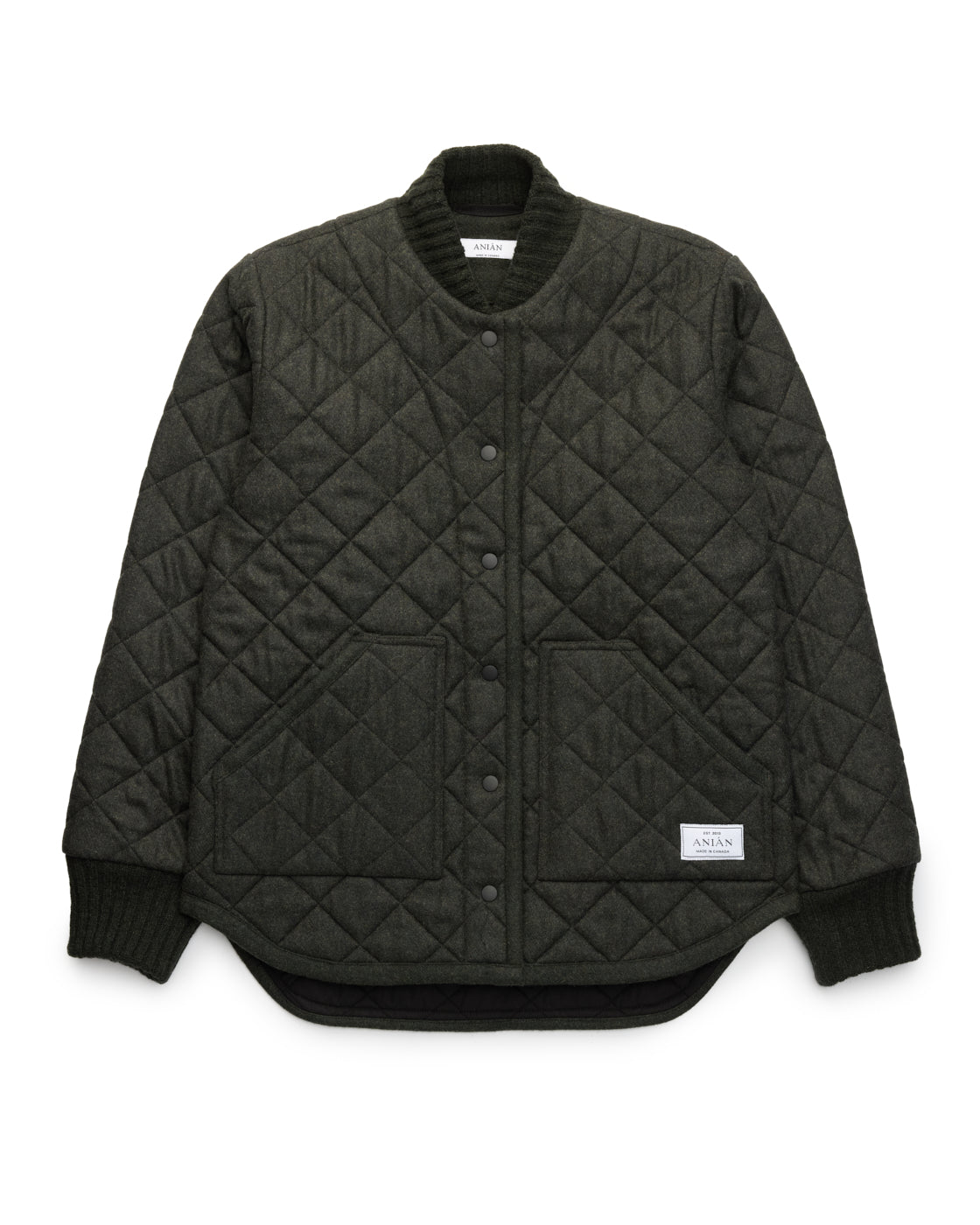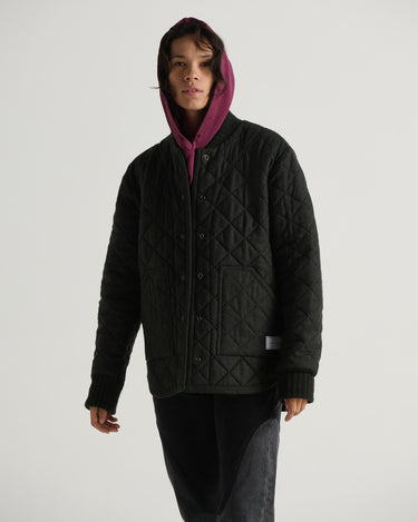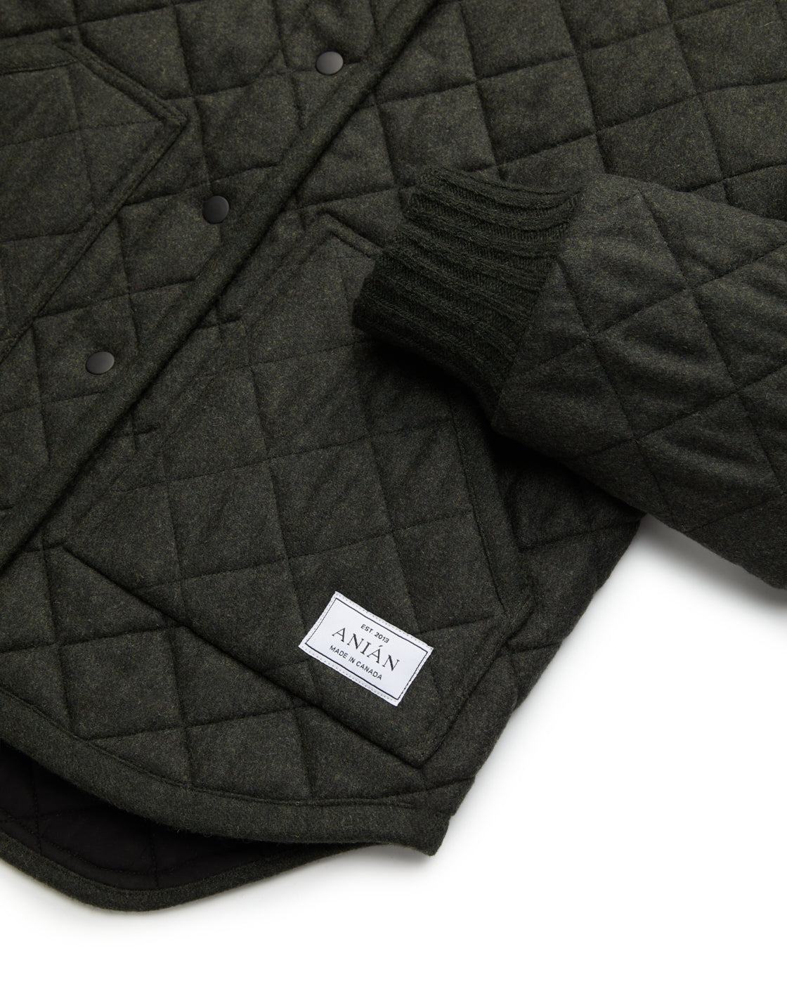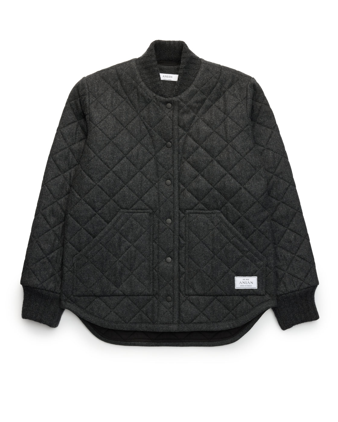 The Quilted Wool Jacket is crafted for layering with an oversized silhouette. Its design offers extra room through the chest and arms for easy movement. See our size chart for more details.