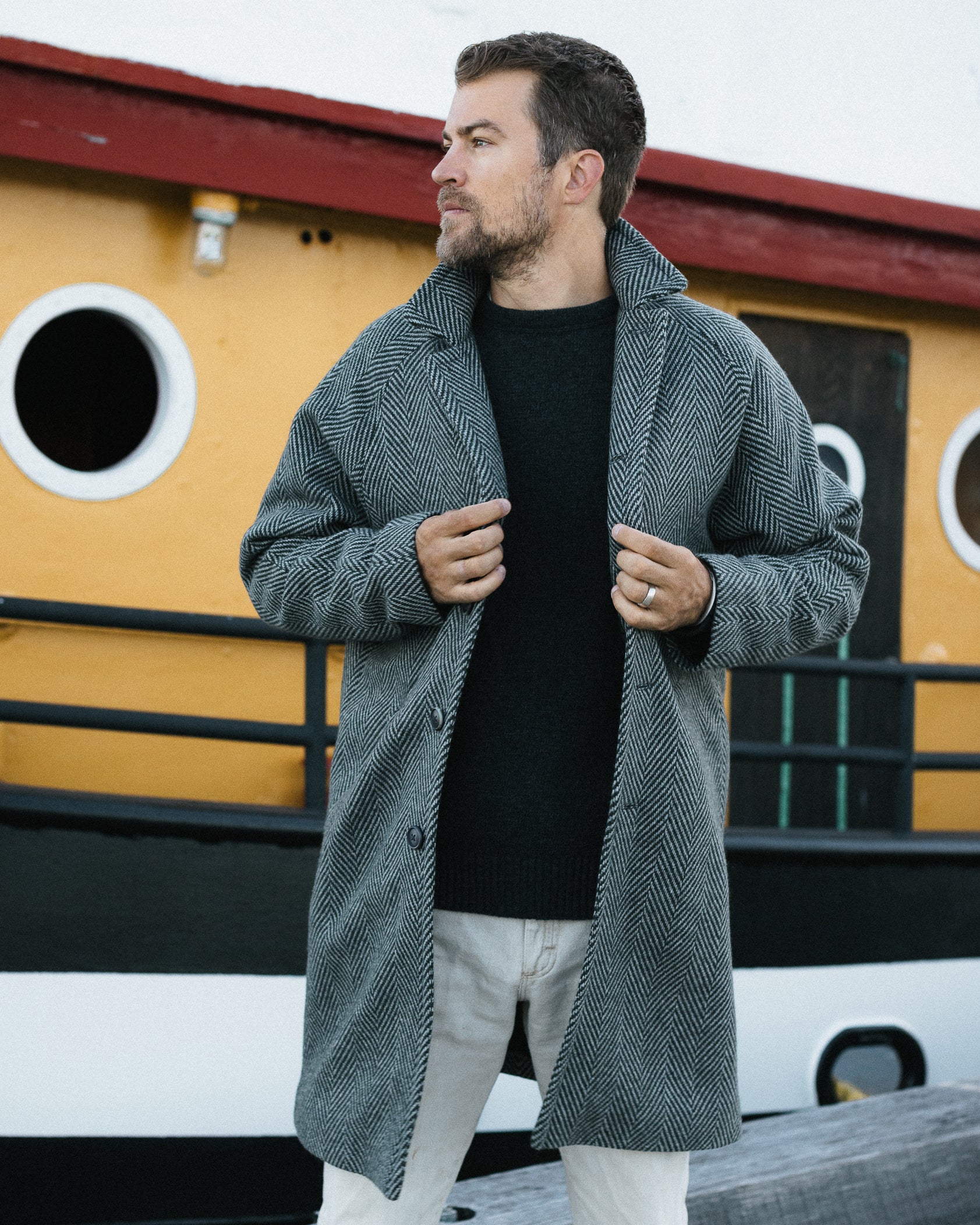 Inspired by the past but reimagined for the future, many of our favourite designs merge centuries of tradition with contemporary, low-impact materials. Made from a warm, durable and weather-resistant post-consumer wool blend, this overcoat features a patterned herringbone weave that was a staple of British tailors on Savile Row. More formal than our other outerwear, the fit is classically tailored with enough comfort and freedom of movement for cold-weather layering. Made in our unique, dye-free process, the heavyweight wool is backed with a smooth, 100% recycled nylon lining, and the collar can be buttoned all the way up on blustery winter days.