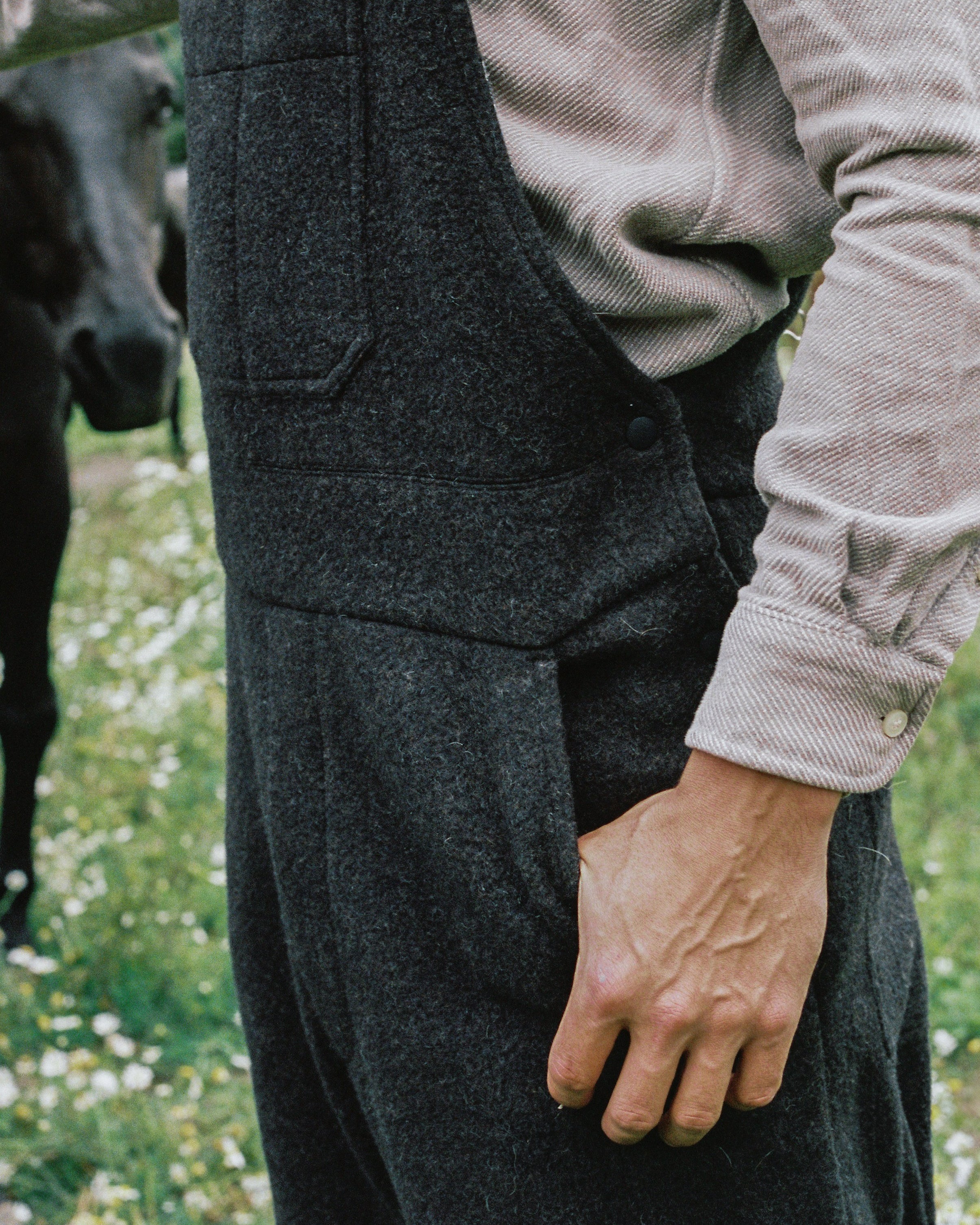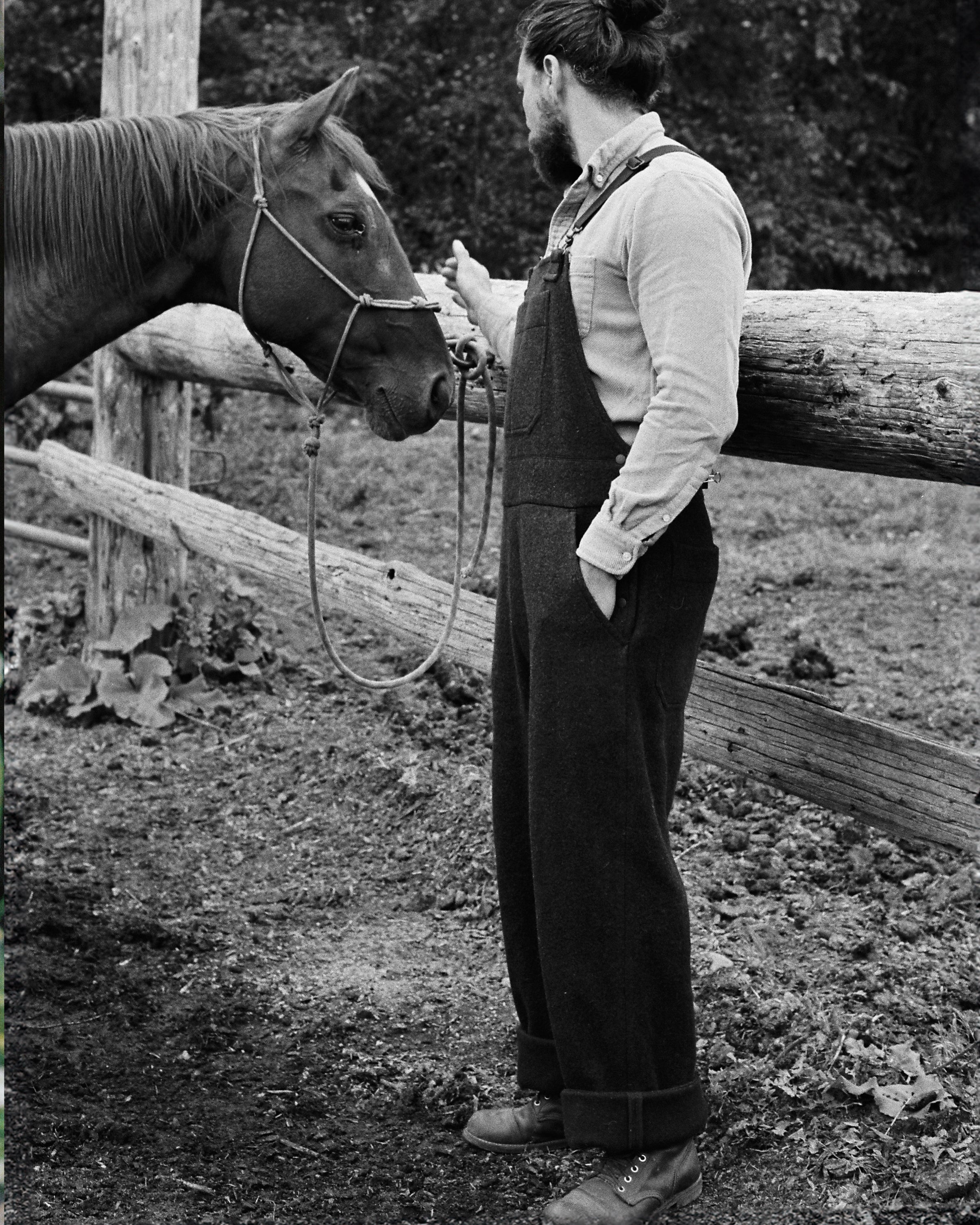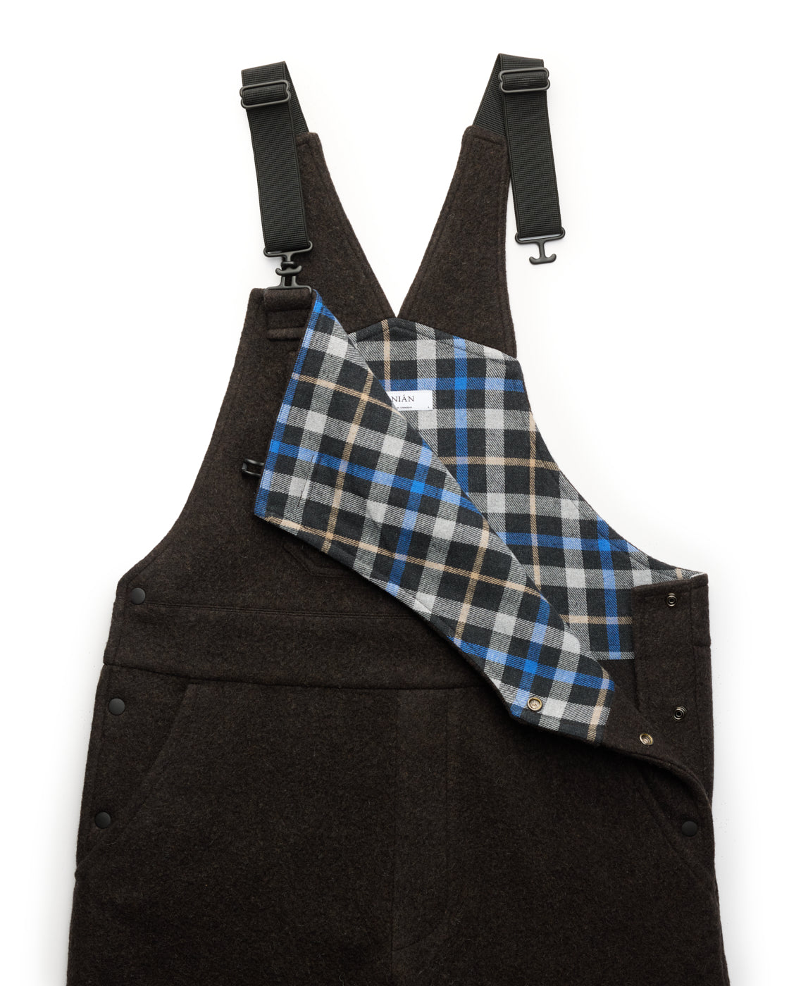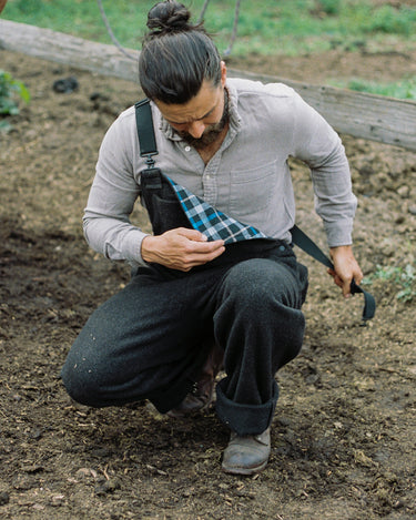 Built from factory offcuts that would be otherwise discarded, our limited run Bolt-End Overalls match the durable function of classic workwear with ANIÁN’s circular, low-waste production. Using fabric ends left over from our coats and shirts, they’re made from sturdy, post-consumer recycled Agnello wool with a post-consumer recycled flannel blend providing extra comfort and warmth in the upper body. Warm, breathable and naturally weather-resistant, they have a standard men's fit for ease of layering and movement when working outdoors in cold and damp conditions. The elastic shoulder straps have metal buckles that let you customize the length; large pockets on the chest and seat hold tools, a phone or anything else you need on the farm or at the cabin, and two deep slash pockets offer more storage or a spot to warm your hands.