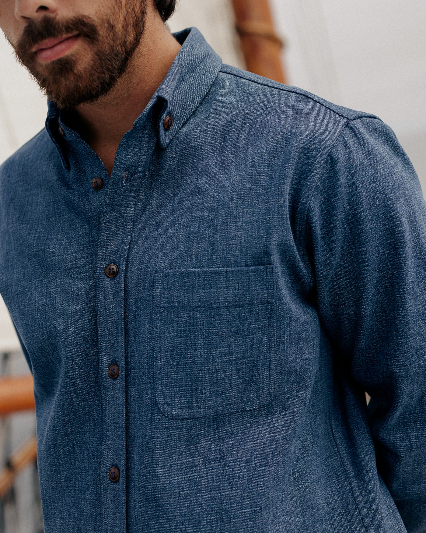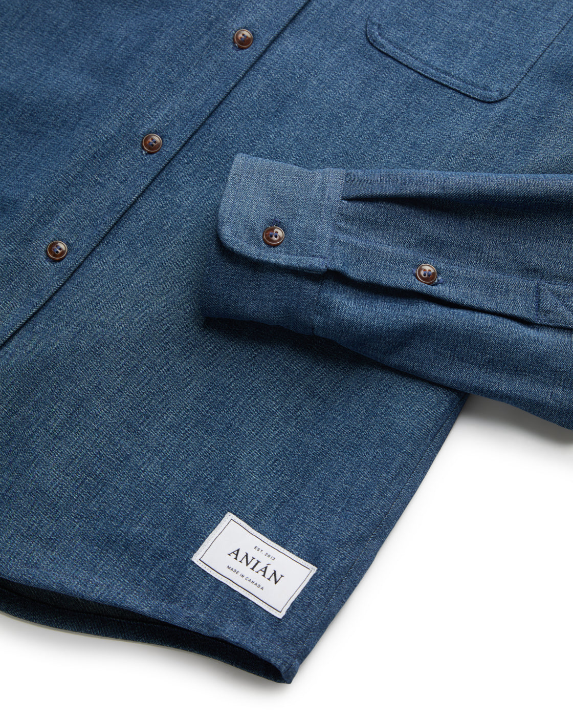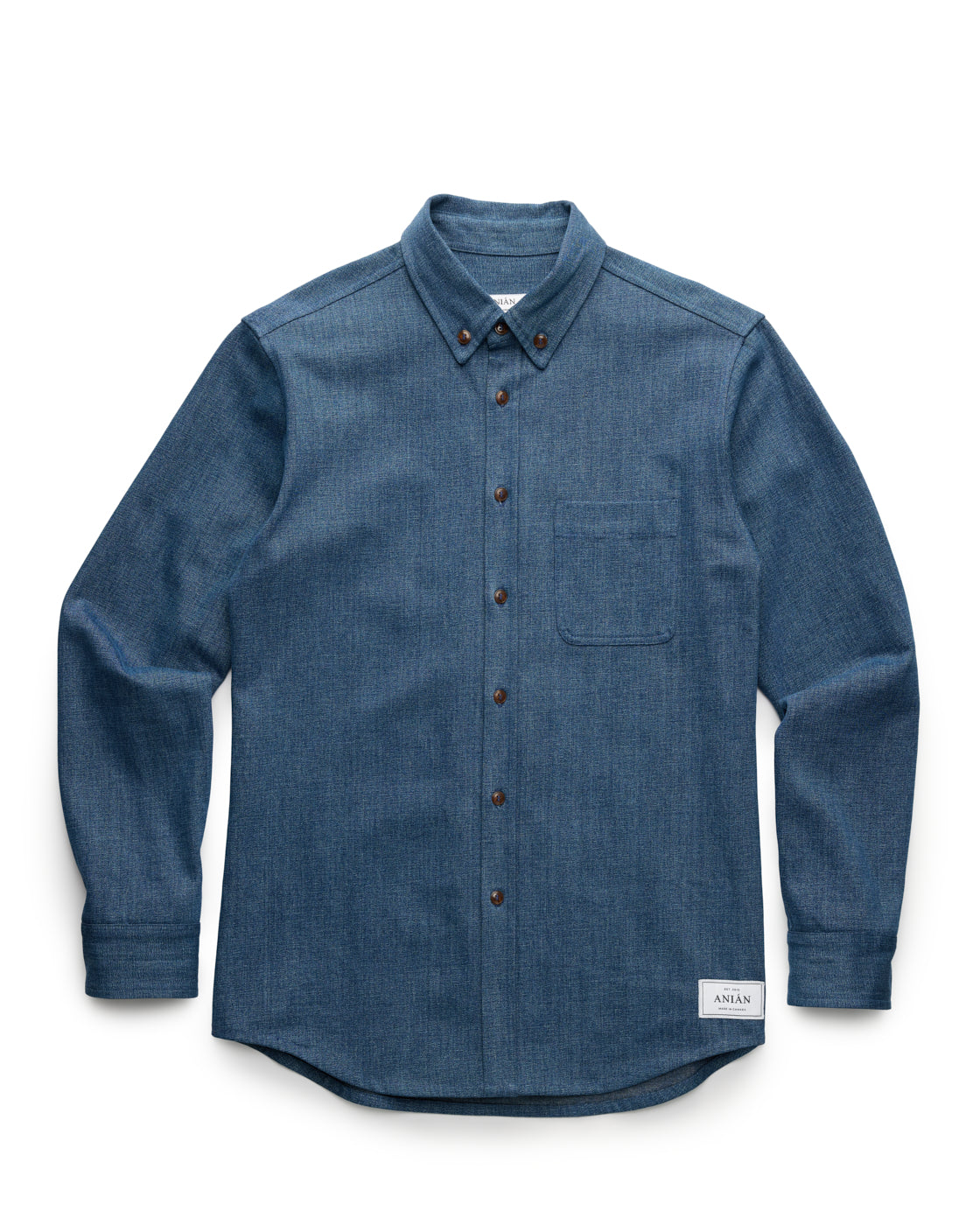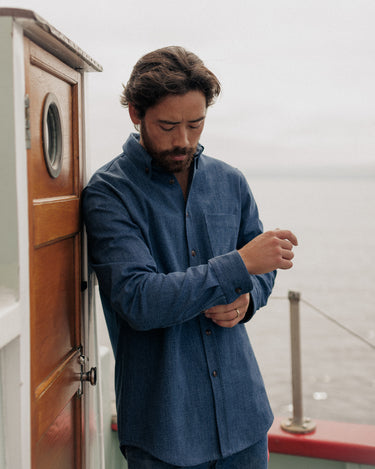 ANIÁN denims follow the same principles that inspire all of our apparel—careful construction, everyday versatility and timeless design. Made to last for life from a sturdy, synthetic-free organic and recycled cotton blend that becomes soft and supple as it breaks in with wear, our Denim Shirt combines the qualities of traditional denim with circular, low-impact production. Durably built with a standard fit for freedom of movement, it’s indigo dyed in small batches that give each shirt a unique colour profile—reflecting our belief that utility and sustainability can go hand in hand.