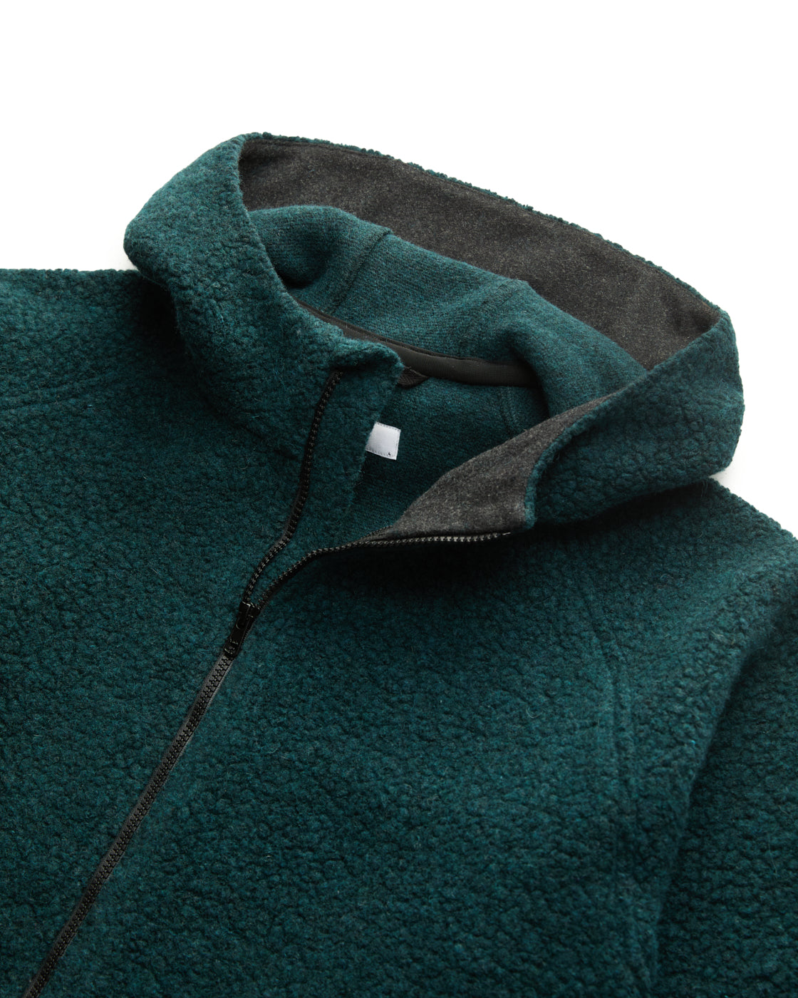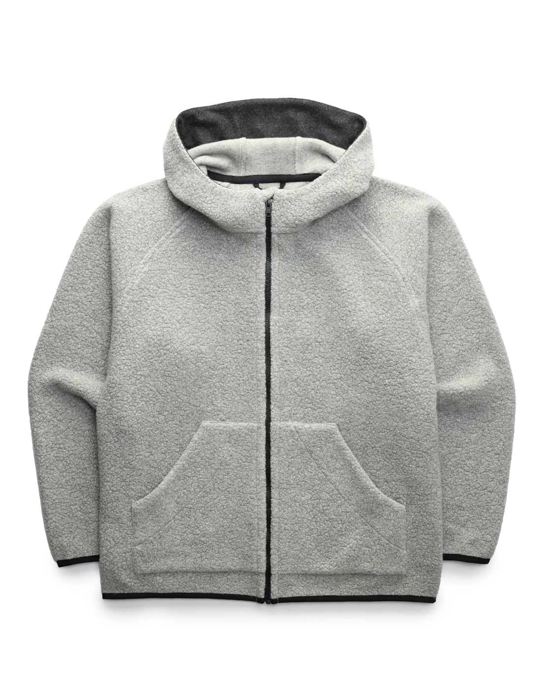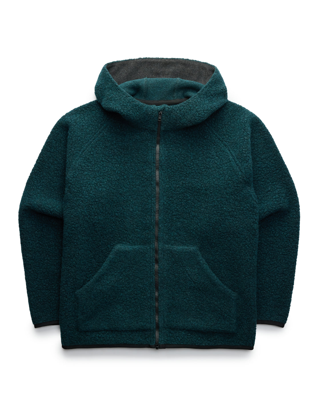 •Thick-knit, 17-oz (580 GSM) 80% recycled wool/20% nylon high-pile fleece is soft, stretchy and naturally insulating; hood is lined with warm 80% post-consumer recycled/20% nylon Melton wool