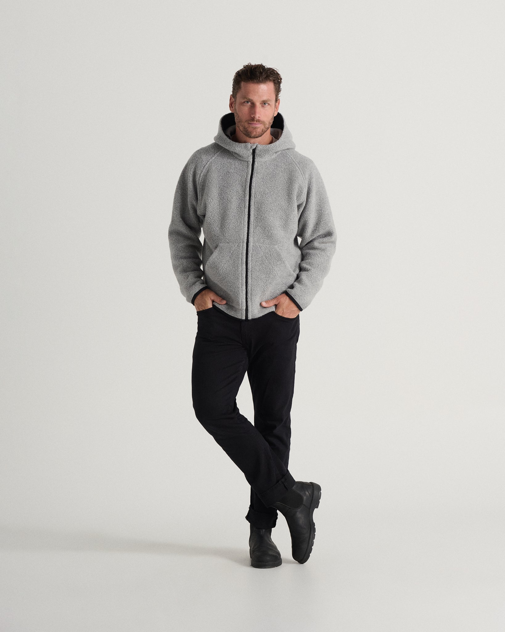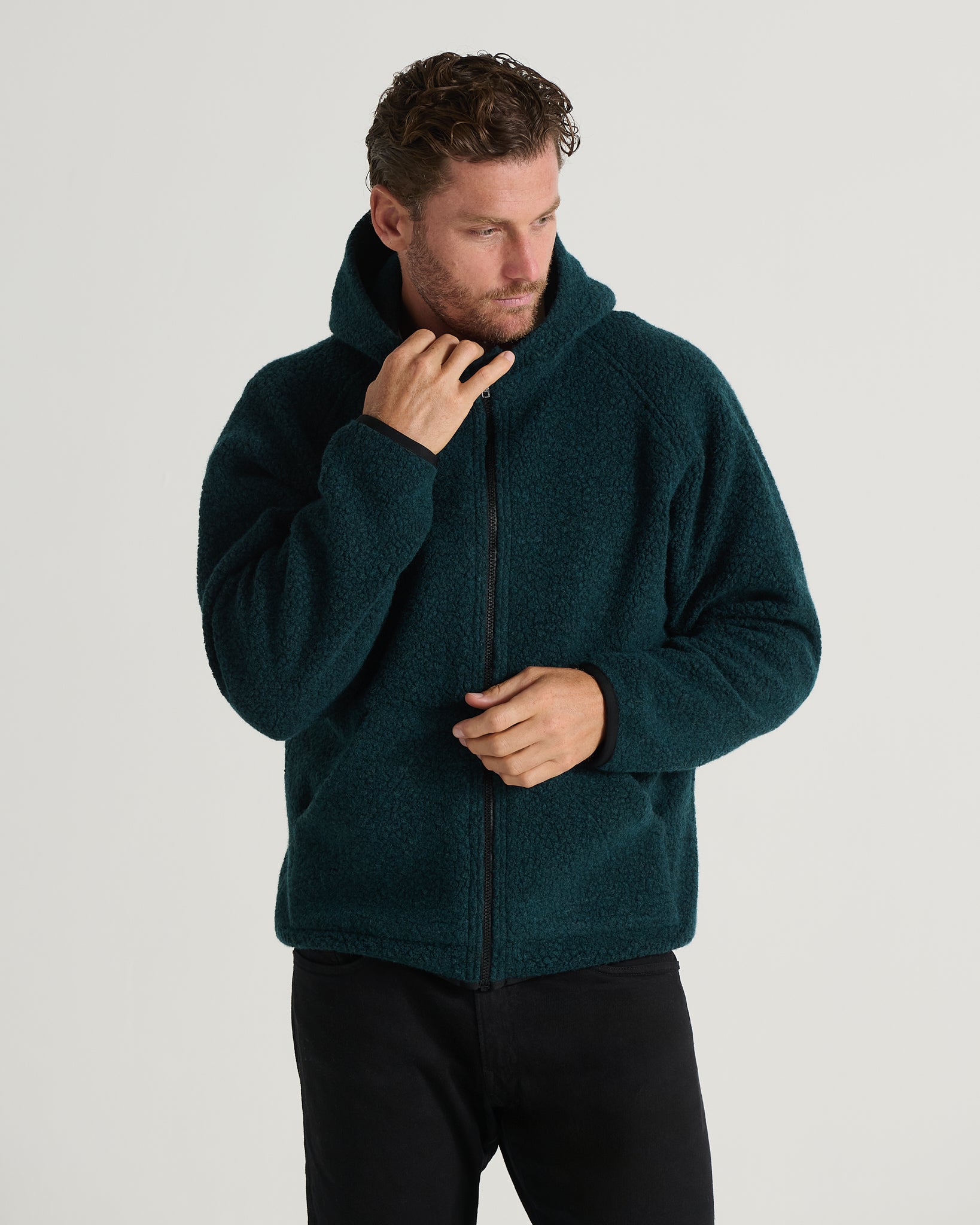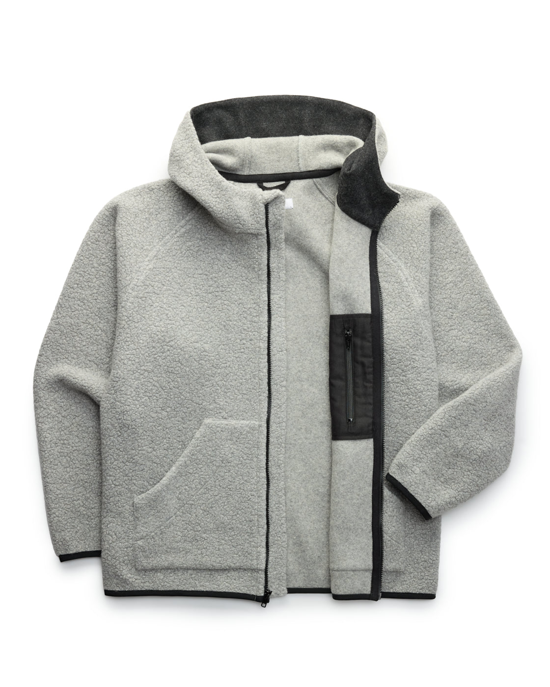 •Thick-knit, 17-oz (580 GSM) 80% recycled wool/20% nylon high-pile fleece is soft, stretchy and naturally insulating; hood is lined with warm 80% post-consumer recycled/20% nylon Melton wool